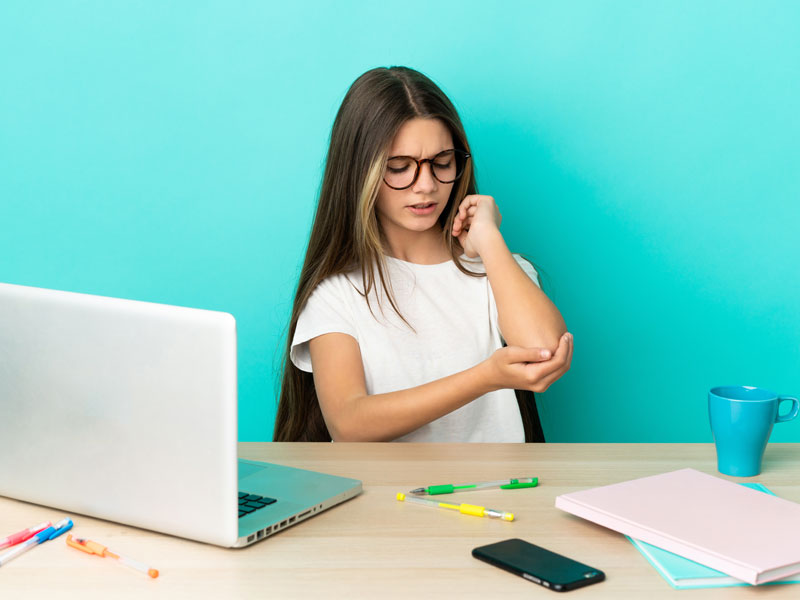 Qu’elle soit optimale ou non, l’utilisation d’un clavier sur une période prolongée peut être à l’origine de conditions ciblant le coude. Il en va de même pour l’utilisation des autres technologies comme le cellulaire, la tablette et les jeux vidéo.
