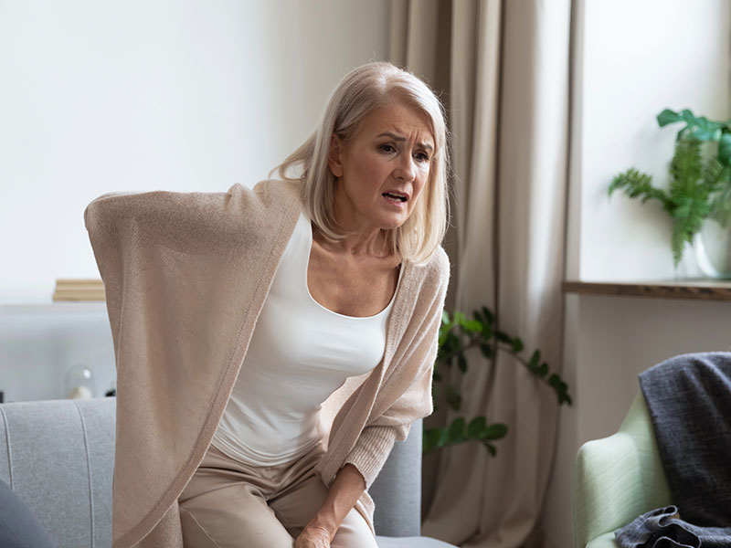 - Limitation de la mobilité et adoption d’une posture de compensation pour éviter les douleurs (ex.: avoir tendance à préférer rester penché vers l’avant).